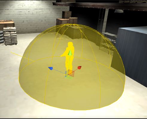This is the spawn point area. You can preview the spawnable space with the semi-sphere, while the centered gizmo represents the actual player size.