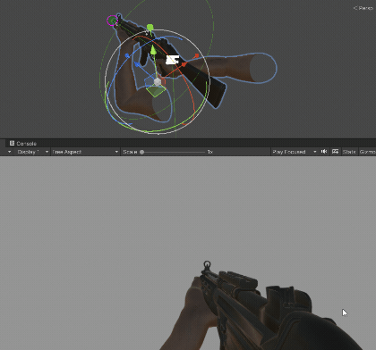 Once you have the desired weapon position, you have to set up the left player hand position to simulating the hand grip in the weapon.