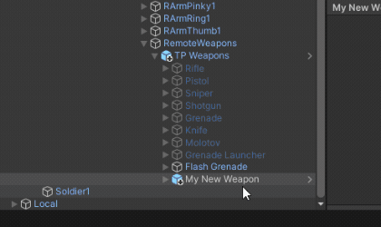 Then rename the duplicated weapon instance in the hierarchy