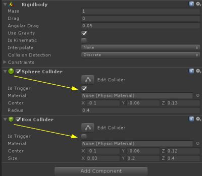 -Sphere Collider: in the sphere collider check 'IsTrigger', this collider is the area where the gun will be detected, when player enter in this, so modify the position and radius if is necessary.
