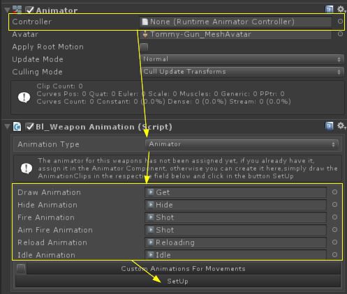 4. Assign the animation clips in their respective fields and click in the SetUp button > select the save folder and that's.