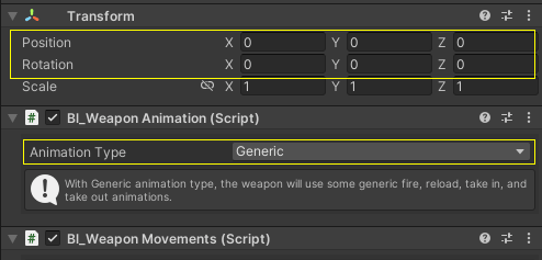 To use these Generic Animations all you have to do is set the Animation Type in bl_WeaponAnimation inspector to Generic and make sure the Transform position and rotation of where the bl_WeaponAnimation script is attached to is set to (0,0,0)