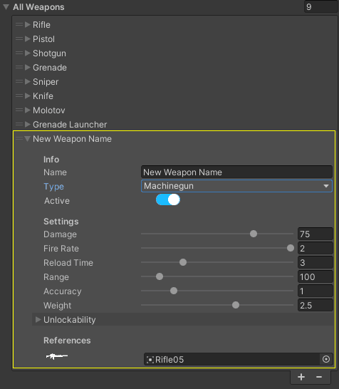 The first step to add a new weapon is to create the weapon basic information,