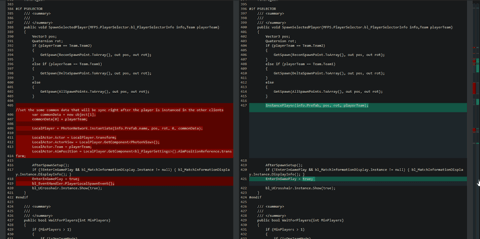 This challenge was partly due to how MFPS was originally designed. The only way to modify the code was by editing the default scripts directly. The tightly coupled code and intricate web of references further compounded the difficulty. Unlike tools or extension assets, game templates are intended for developers to modify the core content, which inherently makes updating to newer versions more complex.