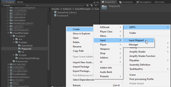 Let's start by creating a new "Arms Material" asset, in the Project Window select a folder where save the asset and do Right Mouse Click -> MFPS -> Player -> Arm Material