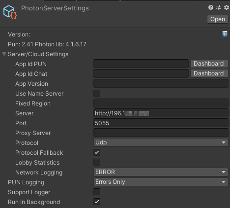 - In the Server text field paste your server (where you setup the Photon Server SDK) public IP or domain name if apply.