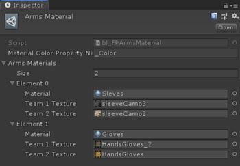 You don't have two manually change the arms, sleeves, gloves, etc.. materials, you onlyhave to create a prefab and list all the arms materials along with the different textures per team.