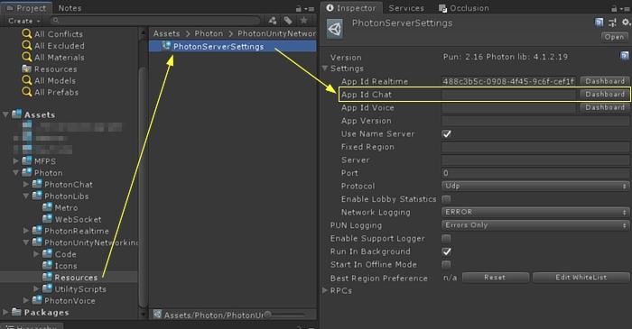 when you have your Chat AppID, paste it on the PhotonServerSettings: