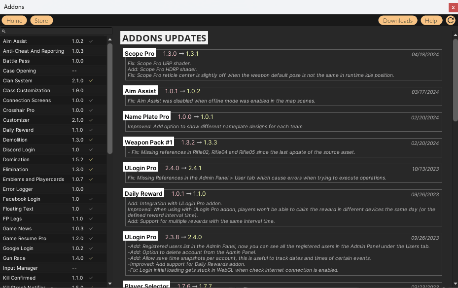 Due to the nature of this asset, updating MFPS when a new version is released can be a bit tricky. As a game template, it's meant to serve as the foundation for your own game, which means you'll likely need to make modifications, integrations, or removals to suit your specific game plan. These changes often involve editing the core code or content of the base template, which complicates the update process.